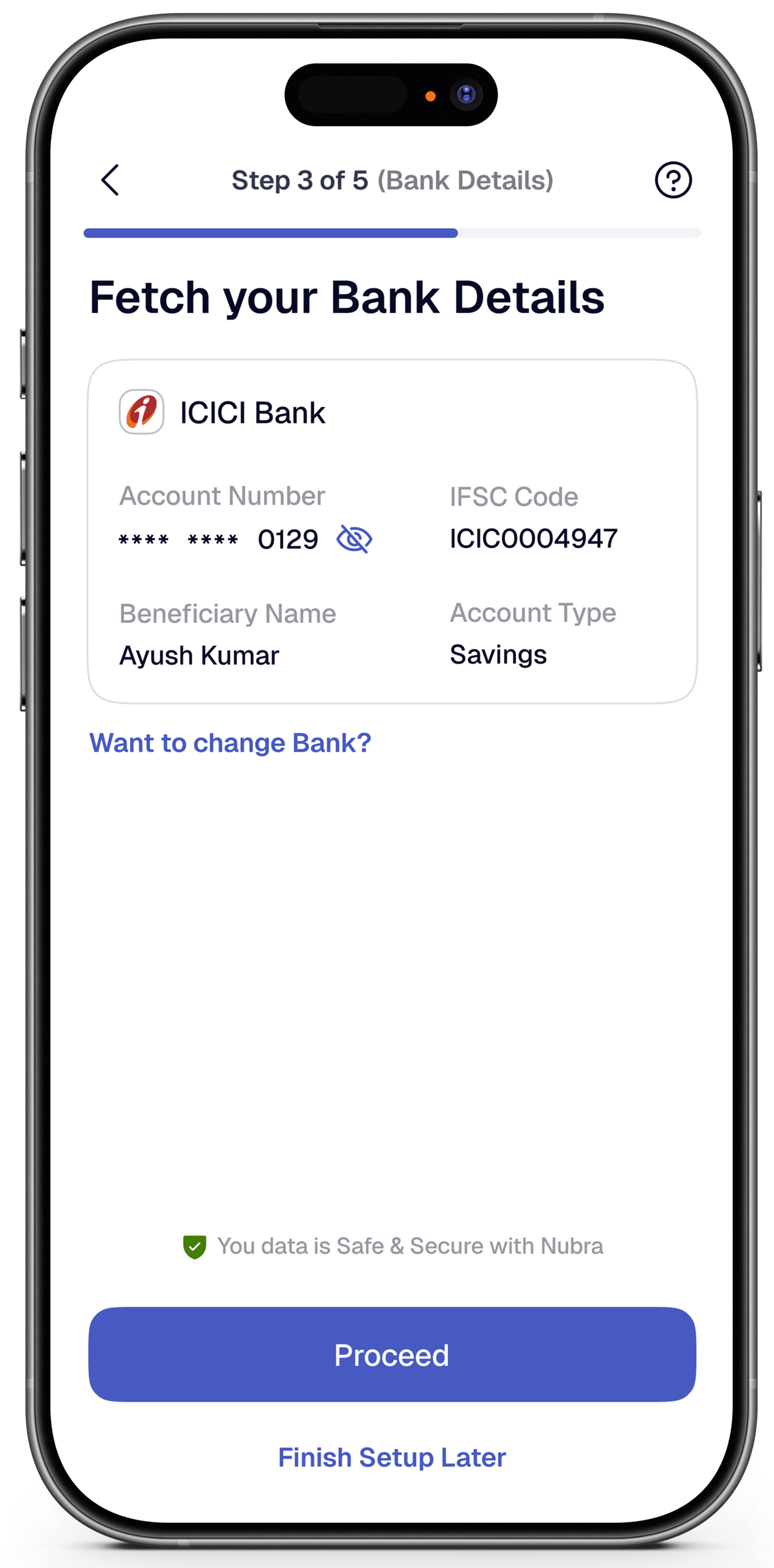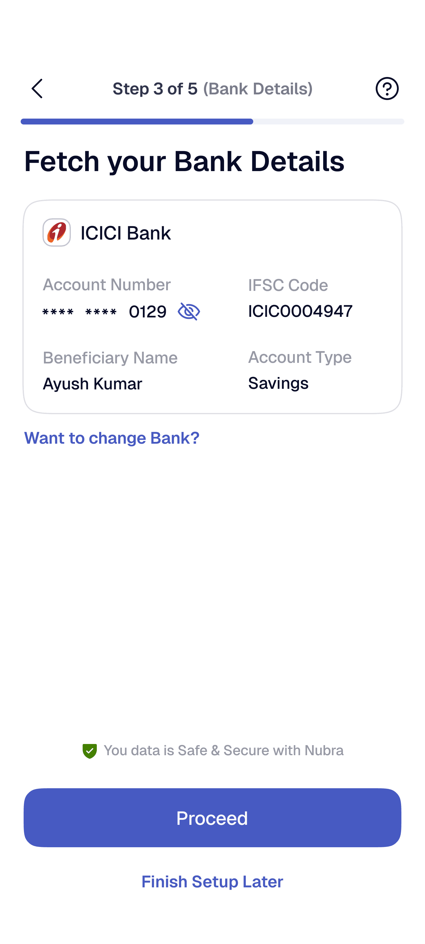 Verified bank details with masked account for secure verification