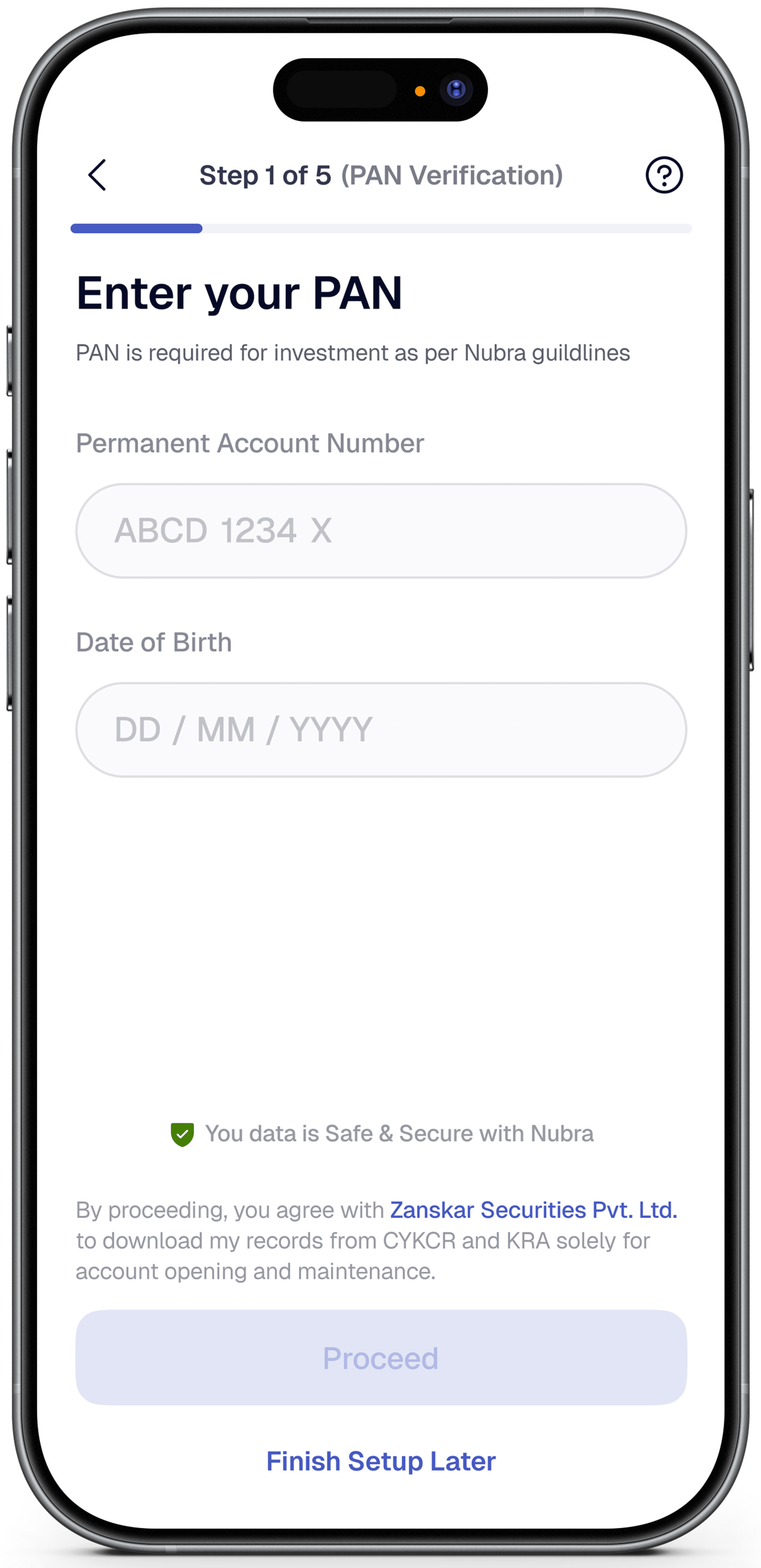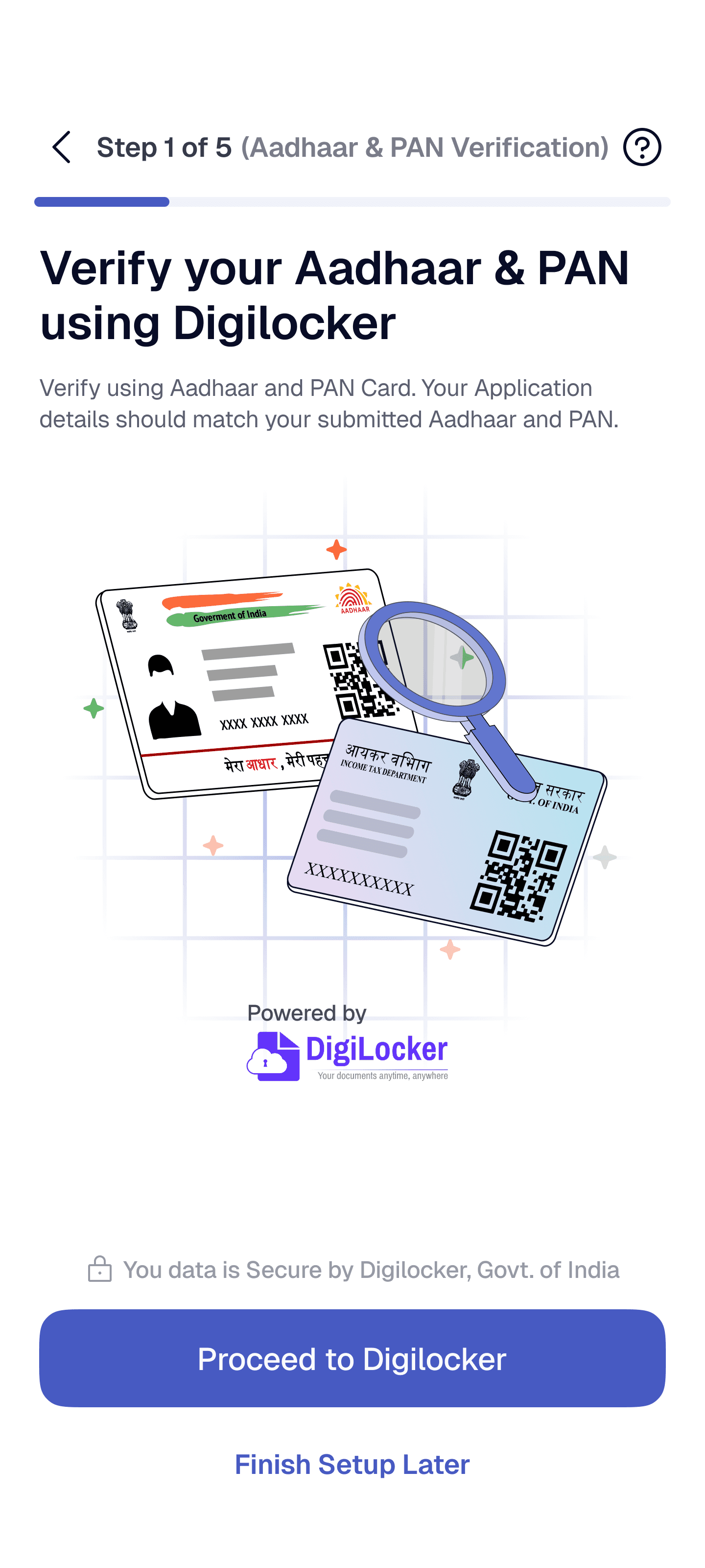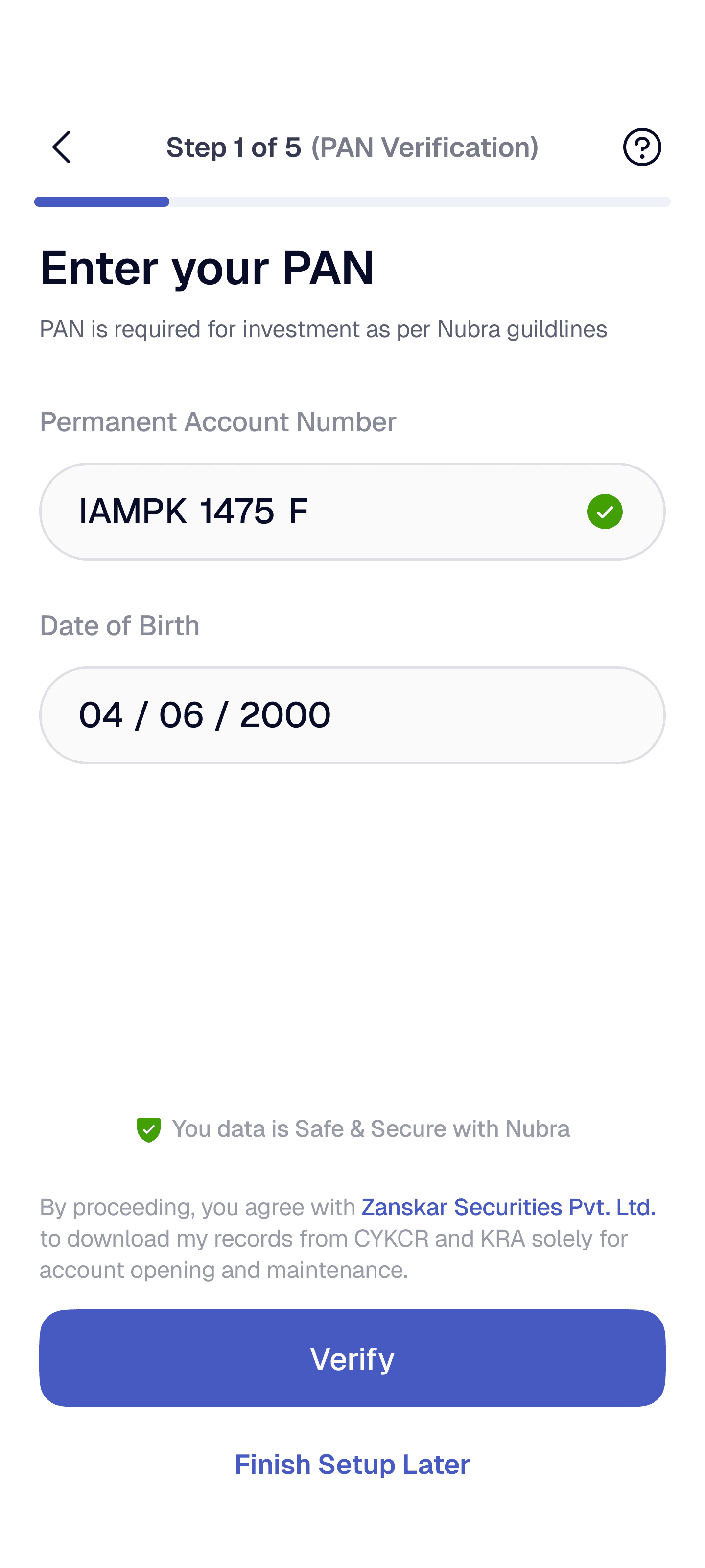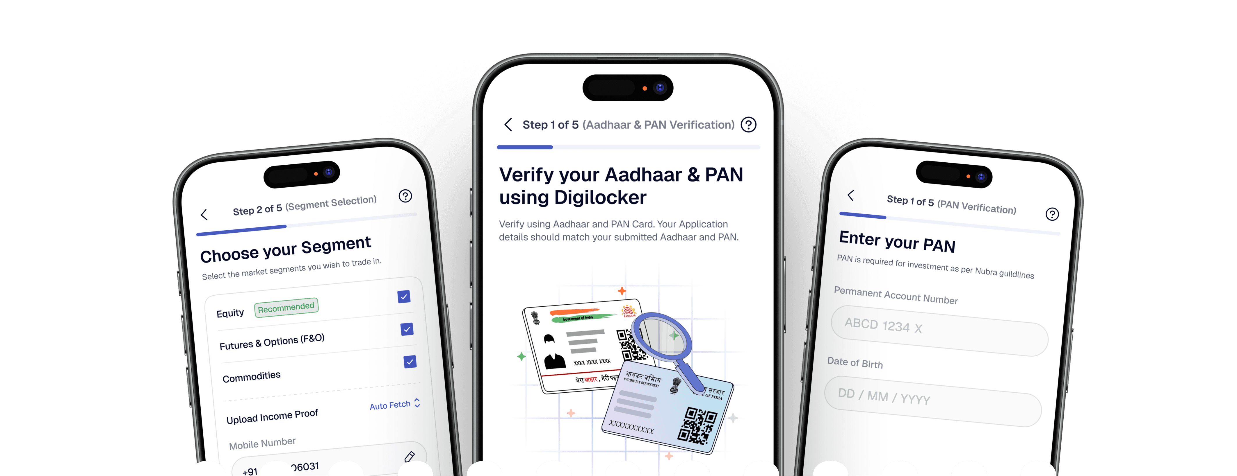 • Start KYC and complete PAN + Aadhaar verification
