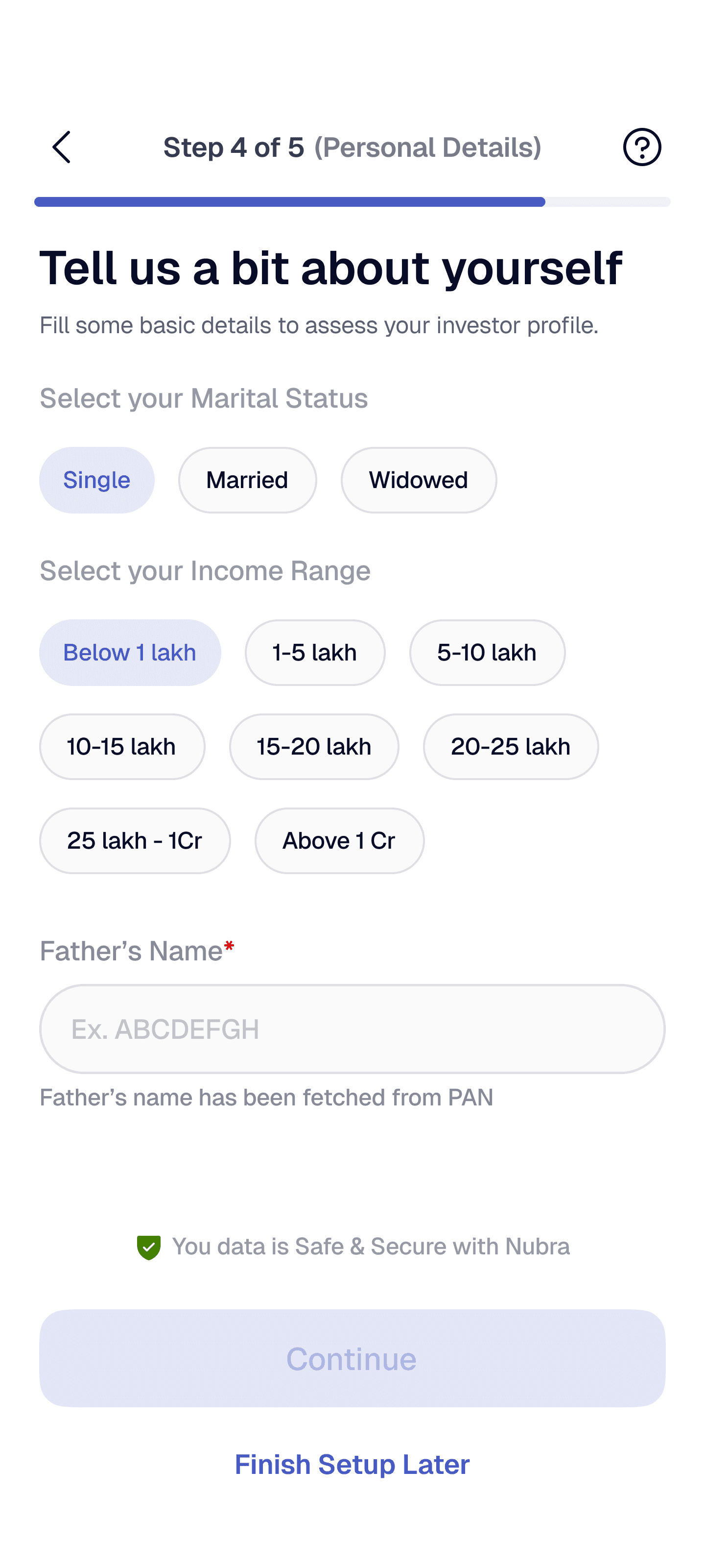 Compress all KYC inputs (personal info, PAN, bank, document upload) into a single long screen to “save time.”